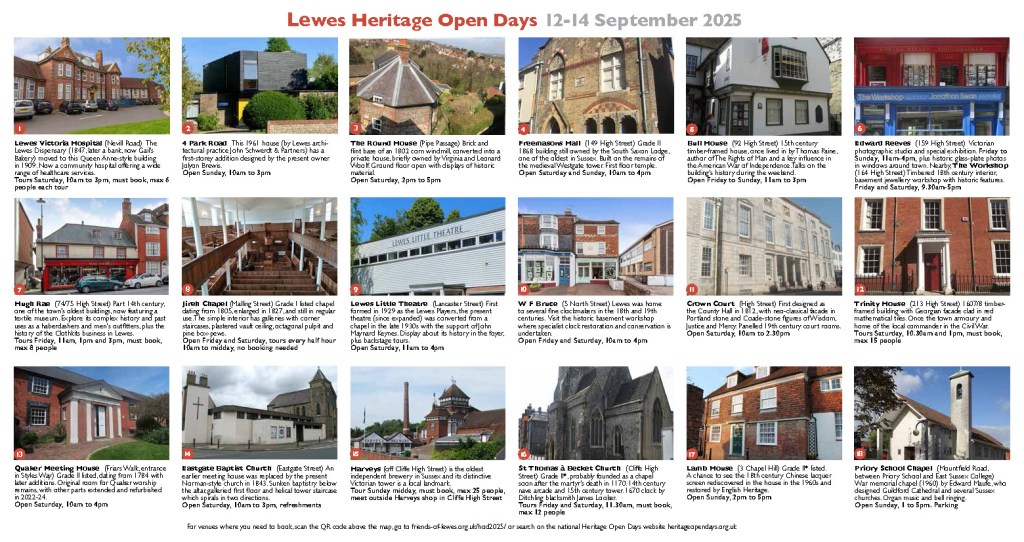 Price includes teas and coffees and a copy of the handbook for those who attend on the day, but not food. There is a Tesco and Costa nearby and Lewes coffee shops in nearby Cliffe.